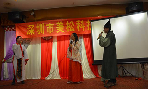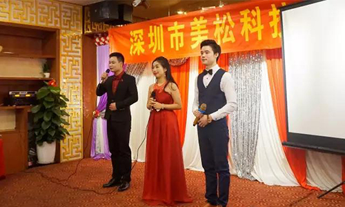 晚會節(jié)目精彩紛呈,高潮迭起,節(jié)目編排有張有弛,料點十足。在晚會節(jié)目進入尾聲時,2位來自俄羅斯的外國朋友—美松國外合作伙伴,也上臺給大家?guī)須g樂。他們用俄語為我們熱情高歌。俄語,雖然很多人聽不懂,但是我們美松人用打拍子的方式協(xié)同這位國外朋友獻出自己的熱情。最后用他們的表達方式祝愿美松走向更美好的未來,同時也期盼彼此之間有更多的合作。其實,合作是必然的,我們美松科技的產(chǎn)品早已售往全國,遠銷海外,相信在未來的日子里也會走得更順暢,為更多的客戶獻上更優(yōu)質(zhì)的產(chǎn)品。