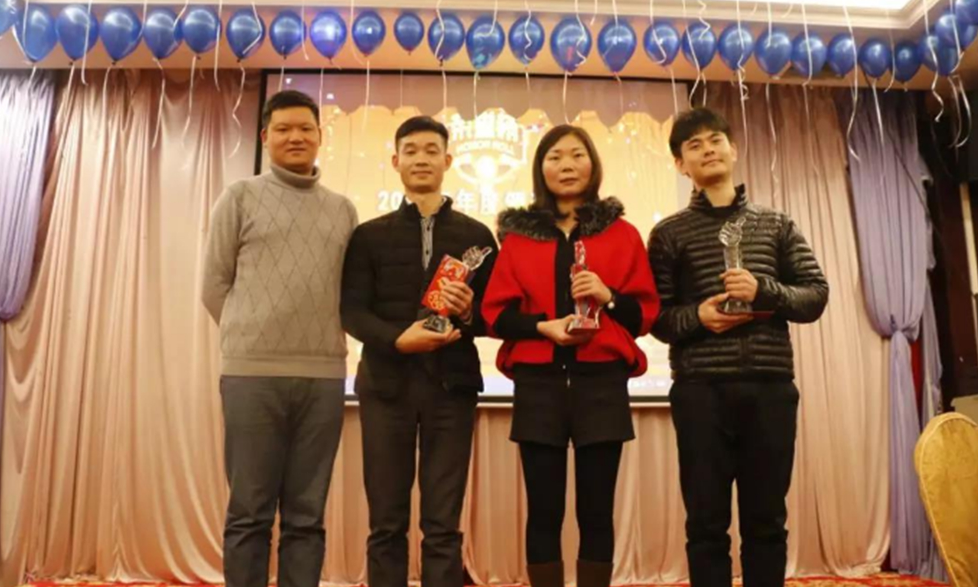 在過去一年里,公司業(yè)績上了一個臺階,規(guī)??焖贁U(kuò)展,這些都離不開公司管理團(tuán)隊及全體員工的努力和付出。節(jié)目表演完畢后,主持人激情洋溢地宣讀2017年度獲得“優(yōu)秀員工獎”、“最佳進(jìn)步獎”、“最佳新人獎”、“最佳創(chuàng)新獎”、“最佳項目獎”等11位獲獎?wù)叩拿麊?,獲獎?wù)邞阎佣d奮的心情走上領(lǐng)獎臺接受公司領(lǐng)導(dǎo)的嘉獎,董事長陳斌先生還為每位獲獎人員頒發(fā)榮譽(yù)獎杯及獎金。每位獲獎?wù)咭舶l(fā)表獲獎感言,從他們的獲獎感言中,我們深深的感受到了他們對公司的堅定信念以及對未來的期望,他們就像夜空里閃亮的星,是公司全體員工的好榜樣,值得我們每一個人去學(xué)習(xí),然后在未來的日子里為公司創(chuàng)造更大的價值。