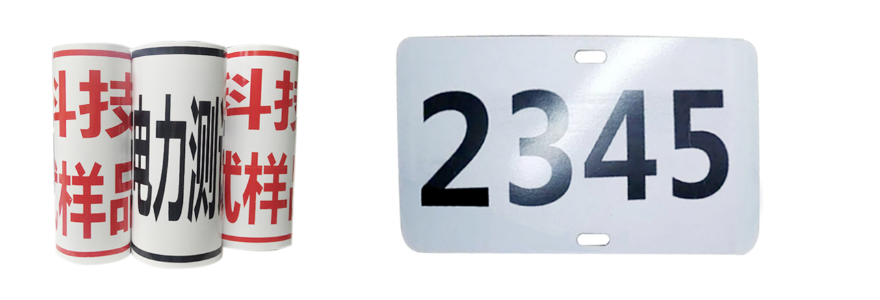 2.熱轉印紙:高分子膠帶標簽(下圖左),鋁合金材料(下圖右)。