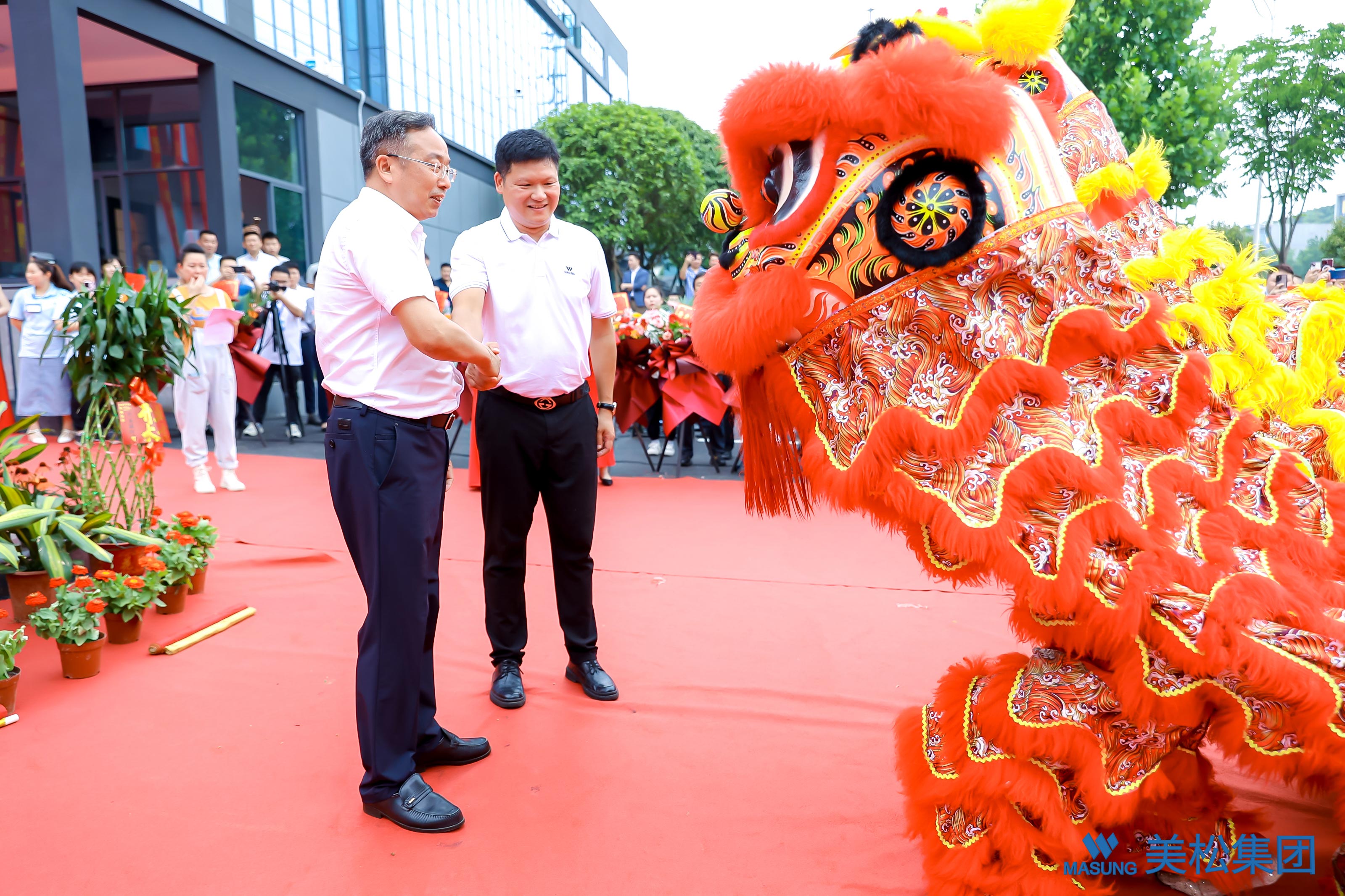 美松集團(tuán)董事長(zhǎng)陳斌先生和望城經(jīng)開(kāi)區(qū)黨工委姚羅光同志共同為美松集團(tuán)智能產(chǎn)業(yè)園園碑揭幕,同時(shí)也為沉睡的祥獅點(diǎn)上尊貴的一筆,把朱砂涂在獅的眼睛上,象征賜予生命,寓意虎虎生威,事業(yè)興盛,祥瑞如意,宏圖大展。一點(diǎn)左眼靈氣滿身,二點(diǎn)右眼志在乾坤,三點(diǎn)額頭旭日凌空,照亮生財(cái)之道,四點(diǎn)獅嘴招財(cái),納祥無(wú)限,財(cái)源滾滾自天來(lái)。