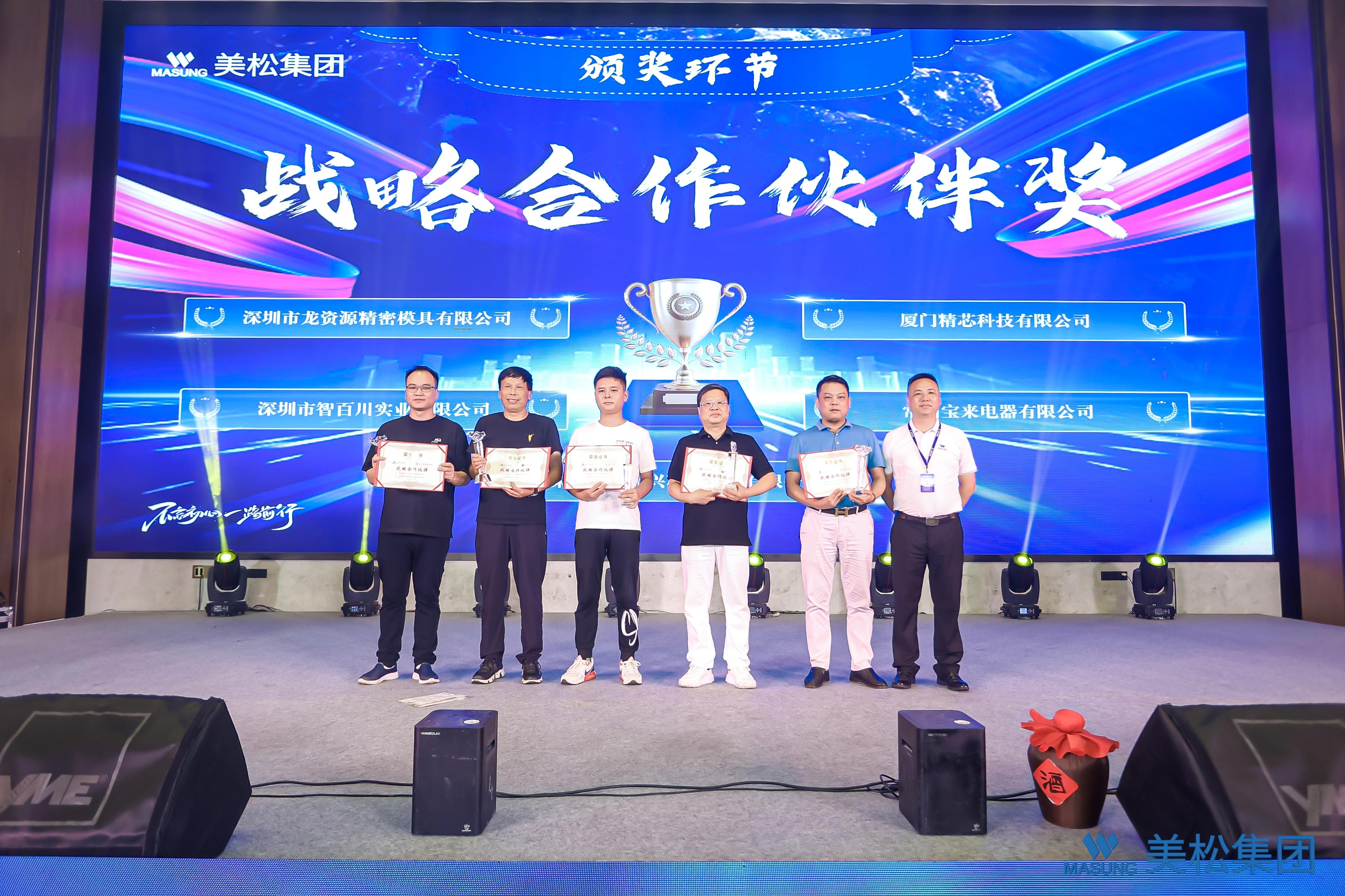 美松人為感謝所有陪同美松風(fēng)雨兼程,一路前行的合作伙伴們?,F(xiàn)場(chǎng)為優(yōu)質(zhì)合作伙伴頒發(fā)了陪伴成長(zhǎng)獎(jiǎng)、戰(zhàn)略合作伙伴獎(jiǎng)、優(yōu)秀供應(yīng)商獎(jiǎng)。思想創(chuàng)造價(jià)值,才智彰顯風(fēng)華,一直以來(lái)和美松優(yōu)勢(shì)互補(bǔ),共求發(fā)展。感謝他們用真誠(chéng)贏得信任,用品質(zhì)換來(lái)永恒。嚴(yán)把質(zhì)量關(guān),為美松呈現(xiàn)高品質(zhì)的產(chǎn)品,為鞏固美松品牌形象創(chuàng)下驕人的成績(jī);感謝他們對(duì)待美松始終堅(jiān)定的開(kāi)啟“攜手并進(jìn)”的馬達(dá),積極配合、腳踏實(shí)地。