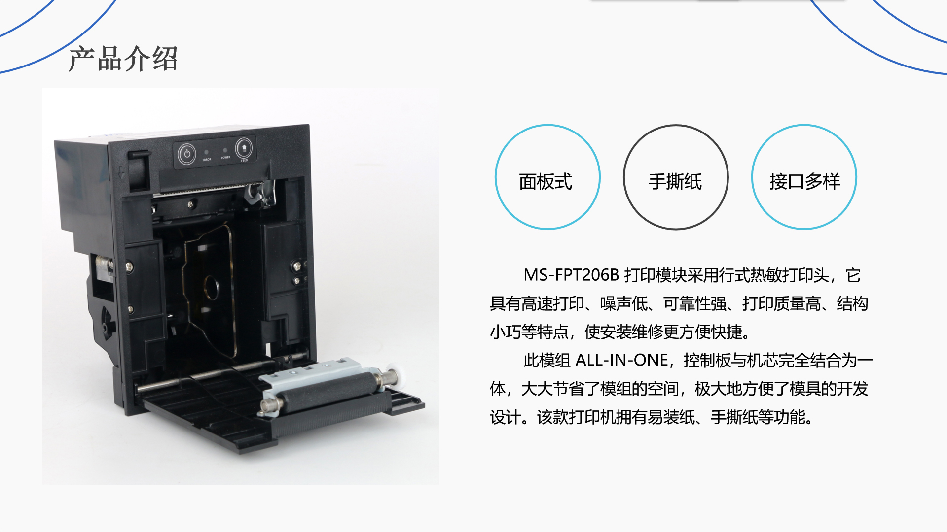 MS-FPT206B 是一款尖端打印設(shè)備,提供一系列功能和規(guī)格,可滿足各行業(yè)企業(yè)的需求。 其線點(diǎn)熱敏打印方式、快速打印速度和寬紙張寬度使其成為需要可靠打印解決方案的企業(yè)的多功能且高效的選擇。 憑借其時(shí)尚的設(shè)計(jì)和用戶友好的界面,MS-FPT206B 有望成為尋求高品質(zhì)打印設(shè)備的專業(yè)人士的熱門(mén)選擇。