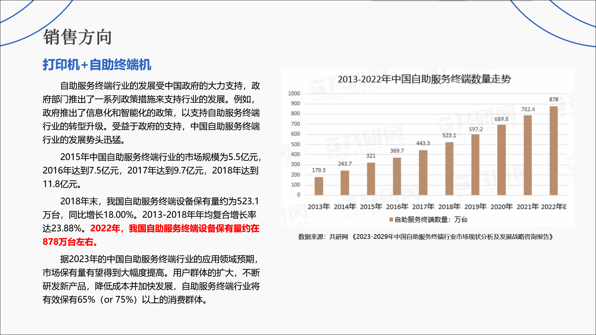 據(jù)2023年的中國(guó)自助服務(wù)終端行業(yè)的應(yīng)用領(lǐng)域預(yù)期,市場(chǎng)保有量有望得到大幅度提高。用戶群體的擴(kuò)大,不斷研發(fā)新產(chǎn)品,降低成本并加快發(fā)展,自助服務(wù)終端行業(yè)將有效保有65% (or 75%)以上的消費(fèi)群體。
