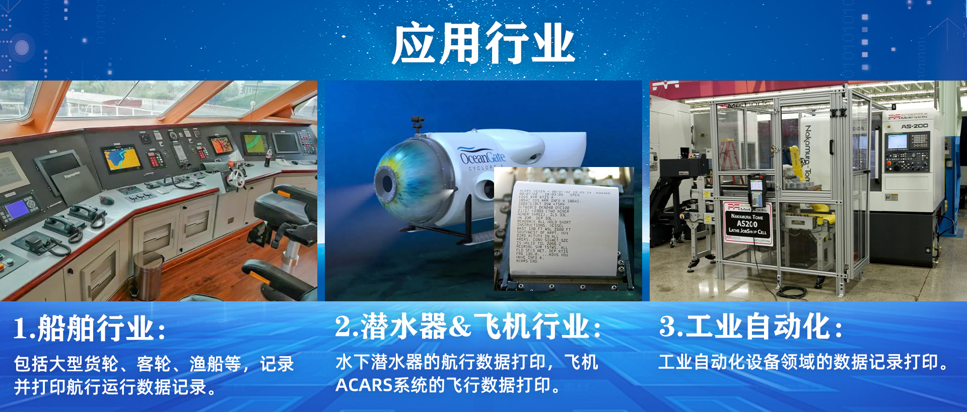目前美松嵌入式熱敏日志回收打印機(jī)&船舶車鐘打印機(jī)MS-CM-WSDM,主要是適用于船舶行業(yè)的數(shù)據(jù)記錄的流水打印,應(yīng)用于大型貨輪、客輪、漁船等船舶。在潛水器&飛機(jī)行業(yè)有相似類型產(chǎn)品的需求。工業(yè)自動(dòng)化設(shè)備領(lǐng)域也一直是我們美松該類型產(chǎn)品進(jìn)行專業(yè)延伸拓展的主要方向之一,可發(fā)揮公司產(chǎn)品定制化的特點(diǎn),獲取工業(yè)自動(dòng)化設(shè)備在數(shù)據(jù)記錄打印機(jī)這類型產(chǎn)品的需求。