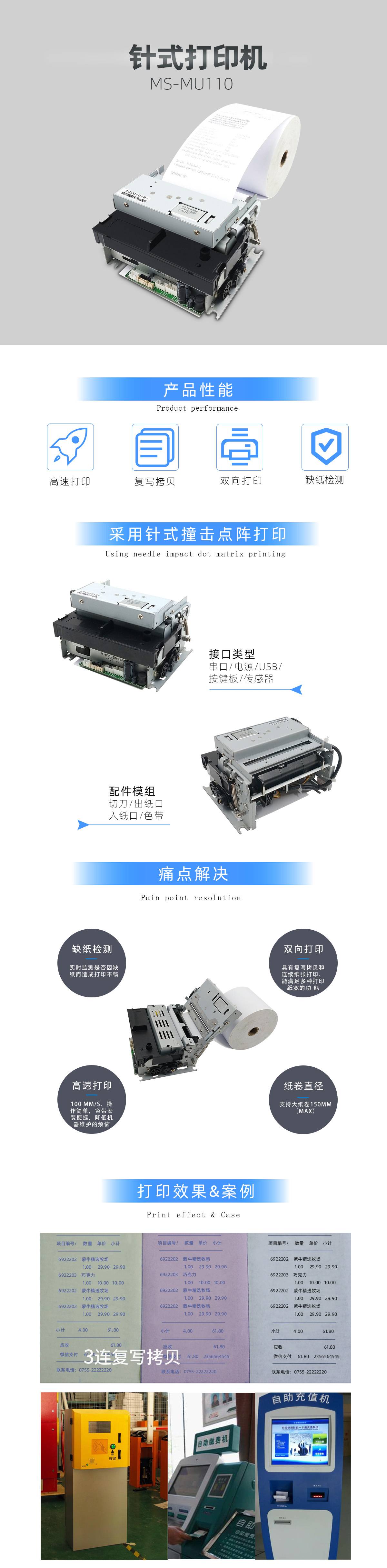 MS-MU110打印一體機是由原裝愛普生M-U110針式打印機機芯,與公司自主研發(fā)的針式打印機控制主板相結(jié)合的一款打印一體機MS-MU110,是一種針式撞擊點陣打印方式的打印機,可靠性強,打印速度快,具有復寫拷貝和連續(xù)紙張打印的功能,控制板結(jié)構(gòu)小巧,操作簡單,色帶安裝便捷,降低機器維護的煩惱。