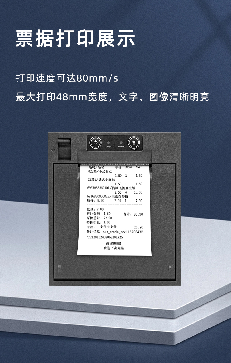 微型打印機介紹:美松根據(jù)微型打印機市場需求,自主研發(fā)一款58mm微型熱敏打印機,這款微型打印機面框兼容80mm打印機尺寸,帶有錢箱接口,收銀系統(tǒng)兼容性好,紙倉空間較大,可以裝60mm直徑紙卷,外觀簡潔大方,耐用不易損壞,適應(yīng)多種場景,滿足微型打印機品牌不同需求。型號為MS-FPT206微型打印機是一款嵌入式微型打印機,不同于POS打印機可以隨身攜帶,嵌入式微型打印機只需要簡單安裝就能實現(xiàn)打印功能的打印模塊,MS-FPT206可嵌入在不同的終端設(shè)備,例如加油站、餐飲收銀機等,微型熱敏打印機是零售、餐飲、娛樂、醫(yī)療、物流等行業(yè)的自助終端設(shè)備理想打印伙伴。