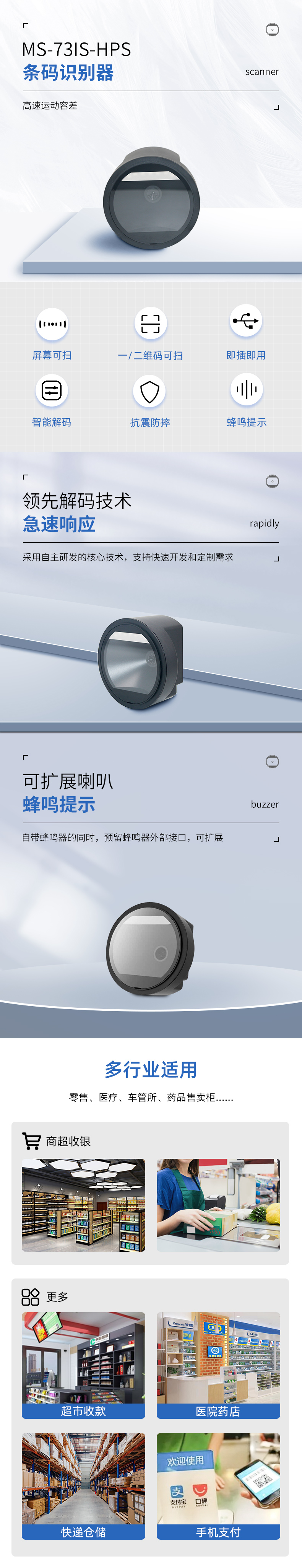 1.針對(duì)零售碼特殊優(yōu)化 2.褶皺殘缺電子秤條碼算法補(bǔ)償 3.百萬(wàn)像素 4.可擴(kuò)展喇叭 5.USB和RS232串口支持 6.廣角 7.高運(yùn)動(dòng)容差