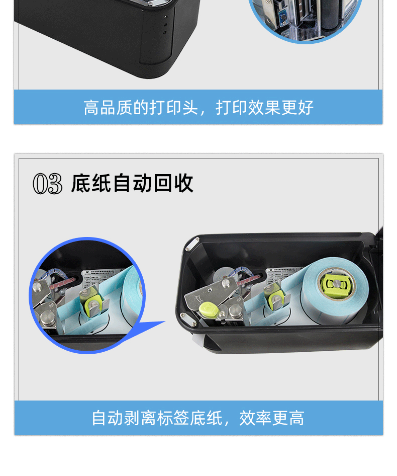 標簽打印一體機 45°角斜出紙 回收底紙裝置 為零售新零售等行業(yè)提供解決方案.