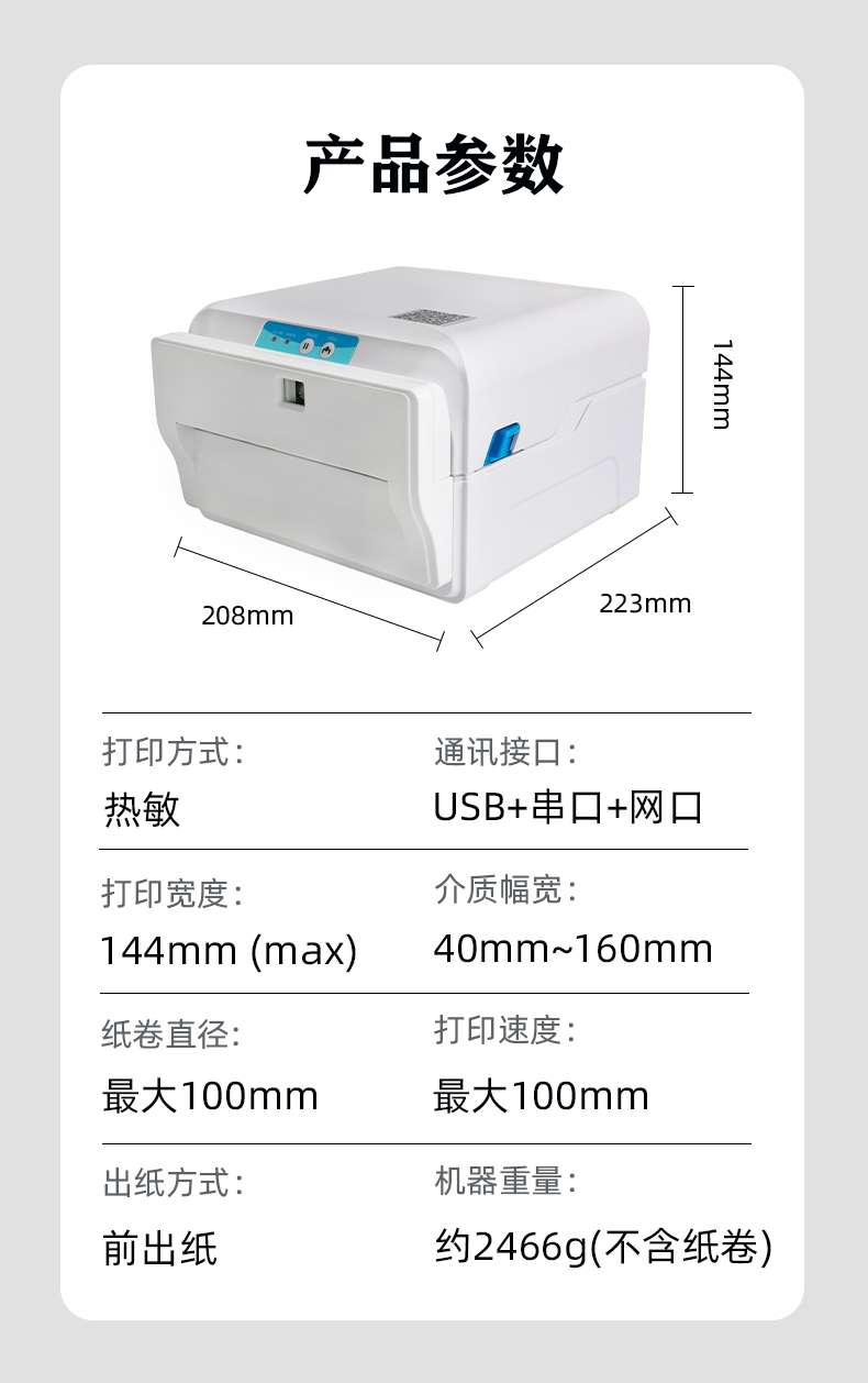 1.一款6寸熱敏條碼打印機(jī),可容納最大160mm寬的紙卷 2.發(fā)票信息保存時(shí)間長(zhǎng),成本低,無碳帶噴墨等耗材 3.桌面式設(shè)計(jì),輕松打印;簡(jiǎn)約時(shí)尚,性能穩(wěn)定,寬幅打印 4.能夠滿足實(shí)時(shí),大批量印制標(biāo)簽需求的熱敏條碼打印機(jī) 5.應(yīng)用于物流,倉儲(chǔ),珠寶,服裝,醫(yī)療,商超等行業(yè)