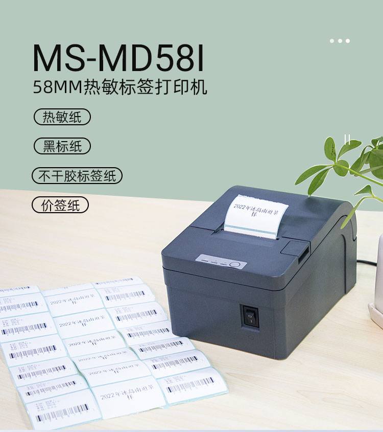 1、零售店鋪和商場(chǎng)超市的標(biāo)簽:對(duì)于零售店鋪和商場(chǎng)超市,水果店等,經(jīng)常會(huì)出現(xiàn)商品價(jià)格的變動(dòng)和商品的更新,所以就需要打印貨物標(biāo)簽以更好的管理,MS-MD58I這一款桌面式的熱敏標(biāo)簽打印機(jī),打印所需的耗材價(jià)格較低,在標(biāo)簽的更新中具有顯著的優(yōu)勢(shì),MS-MD58I在打印的方面也可完美用于打印商品標(biāo)簽、價(jià)格標(biāo)簽和促銷(xiāo)標(biāo)簽等。其快速、準(zhǔn)確的打印功能也能輕松支持大量商品的快速上架和更新,從而提升店鋪運(yùn)營(yíng)效率和顧客購(gòu)物體驗(yàn)。