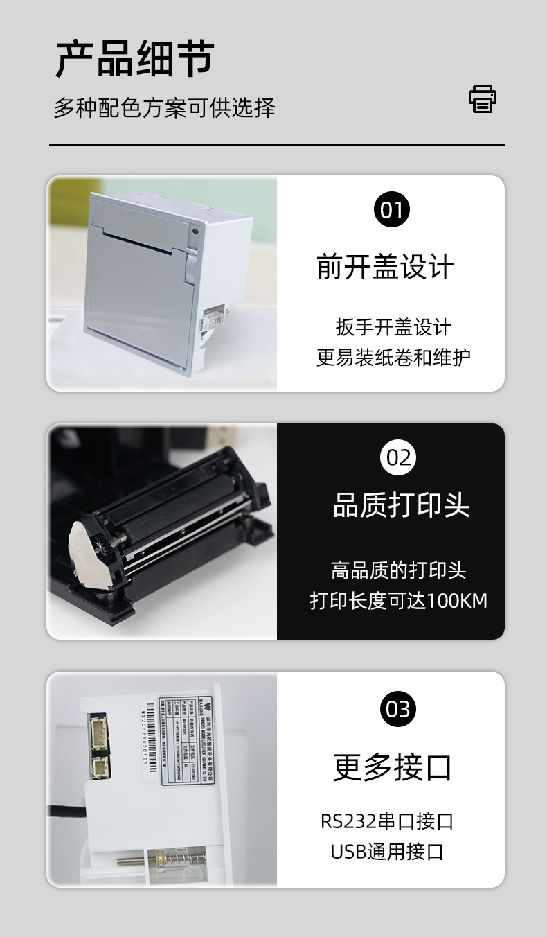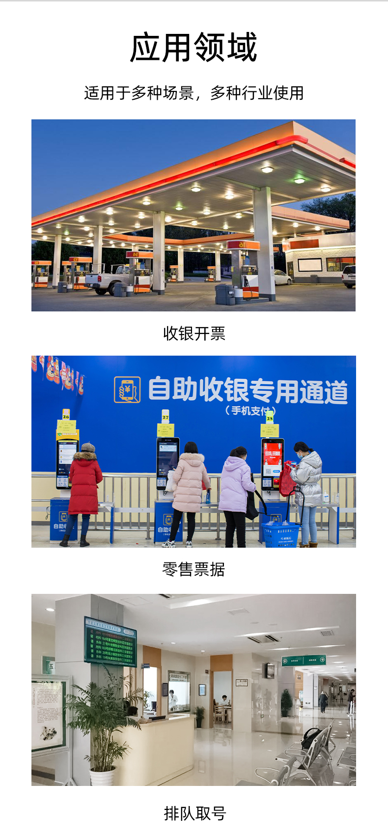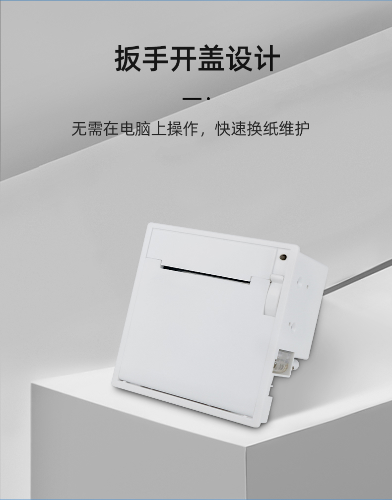 1.大紙倉(cāng)設(shè)計(jì),拒絕頻繁換紙; 2.更快打印速度,提高工作效率; 3.易裝紙?jiān)O(shè)計(jì),扳手或者鑰匙開蓋,放入小票紙,關(guān)上機(jī)蓋就可使用 4.自動(dòng)切紙,無人值守嵌入式打印機(jī) 5.自動(dòng)切紙,可調(diào)節(jié)全自動(dòng)切紙、半自動(dòng)切紙,半自動(dòng)切紙切完中間會(huì)留一點(diǎn),輕輕一扯就好,無需手動(dòng)撕紙,以免造成卡紙; 6.一鍵開蓋裝紙換紙,無需打開機(jī)柜就可輕松實(shí)現(xiàn)裝紙和換紙,簡(jiǎn)單方便。