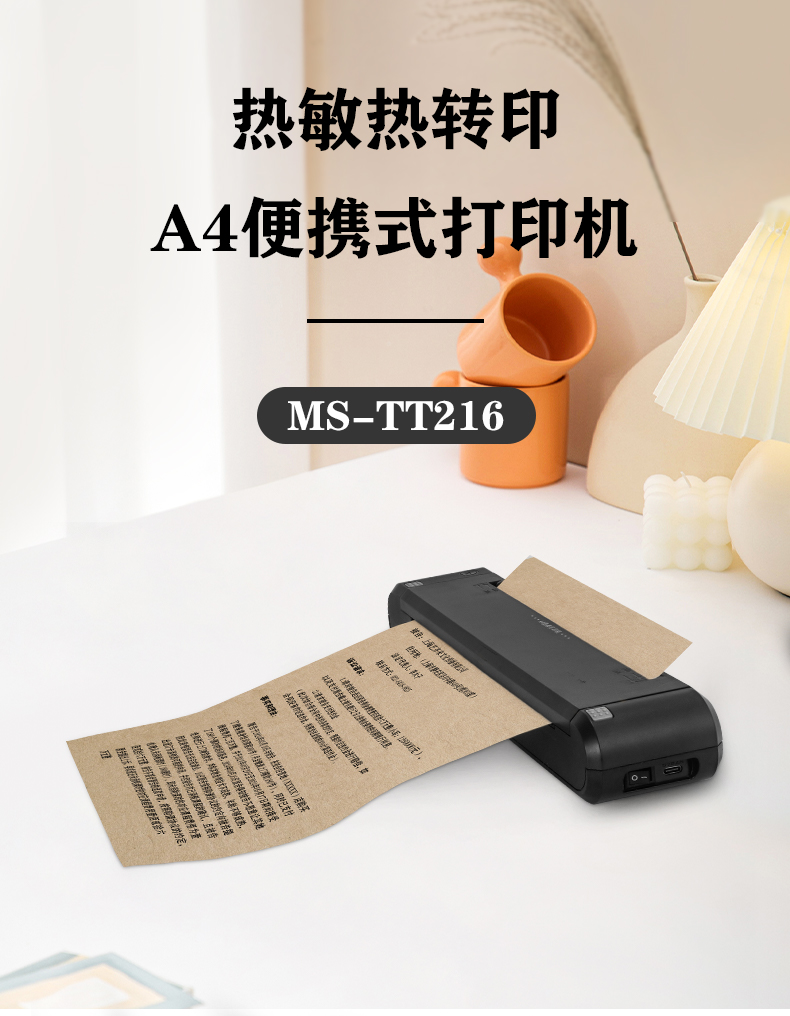 MS-TT216是美松的一款A(yù)4便攜式打印機(jī),它的體積小巧打印的文字圖像清晰明亮, 同時(shí)具有熱敏打印模式和熱轉(zhuǎn)印打印模式, 在使用熱敏打印模式時(shí),無需其他的耗材,只需要A4熱敏紙就可以進(jìn)行打印,方便快捷 使用熱轉(zhuǎn)印模式進(jìn)行打印,加入碳帶進(jìn)行打印,打印的文字圖像更清晰明亮,保存時(shí)間更長 在使用的耗材紙張方面,可支持多種類型的介質(zhì)打印 打印的介質(zhì)厚度 0.07-0.12mm左右即可完美打印