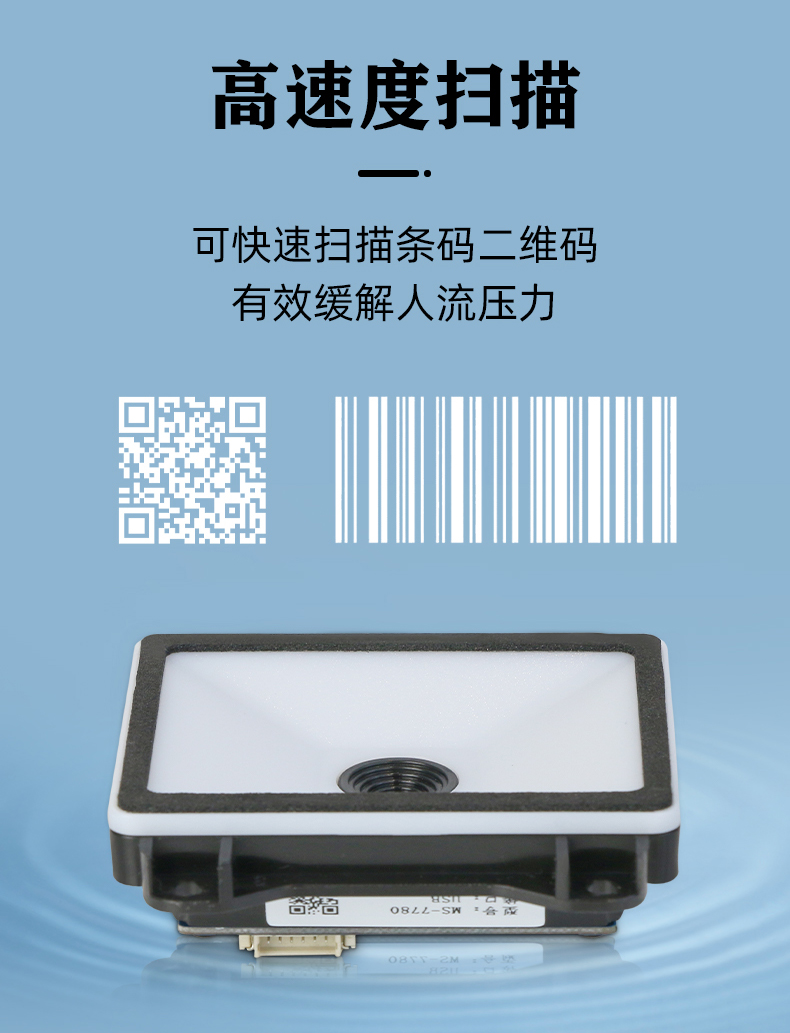 采用自主研發(fā)的核心技術(shù),極速響應(yīng),支持快速開發(fā)和定制需求手機(jī)可以貼的更近整機(jī)厚度僅 21MM,更方便集成超強(qiáng)電子屏碼解析對(duì)高密,低對(duì)比度,色彩條碼有較強(qiáng)的解析能力多種接口協(xié)議:USB、USB COM、TTL3.3V、等接口;物理接口形態(tài)有 12PIN 0.5mmFPC(選配)和6PIN MX1.25 間距端子座 集成蜂鳴器、補(bǔ)光燈、端子于一塊核心板 應(yīng)用場景: 車載 POS、閘機(jī)、門禁、電商自提柜、藥品售賣柜、自助查詢、排隊(duì)叫號(hào)、金融、醫(yī)療、快遞、收銀等自助設(shè)備等,對(duì)電子屏碼應(yīng)用場景尤為適合。