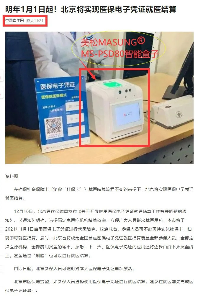 據(jù)中國青年網(wǎng)報道,2021年1月1日起,北京將實現(xiàn)醫(yī)保電子憑證就醫(yī)結(jié)算,美松MS-PSD80集打印掃描結(jié)算 智能 一體機亮相北京助力醫(yī)保事業(yè)。